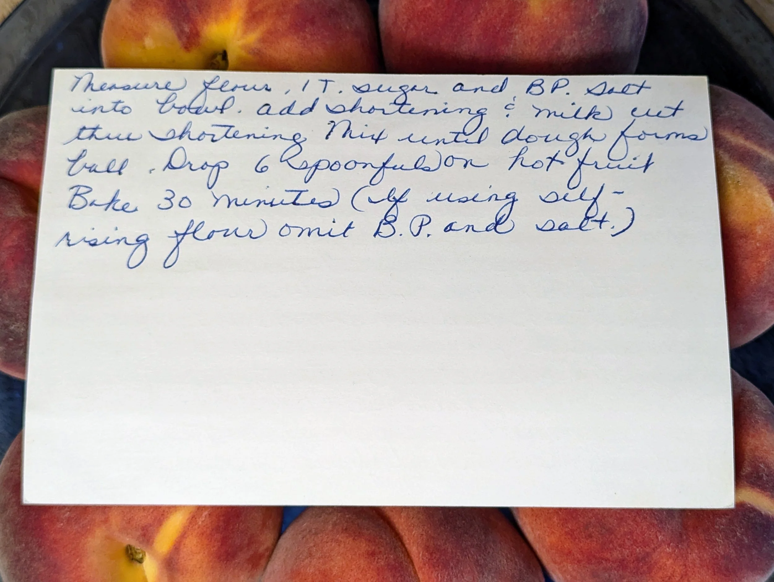 Fresh peaches really do make the recipe, although they could be substituted with good drained canned peaches.